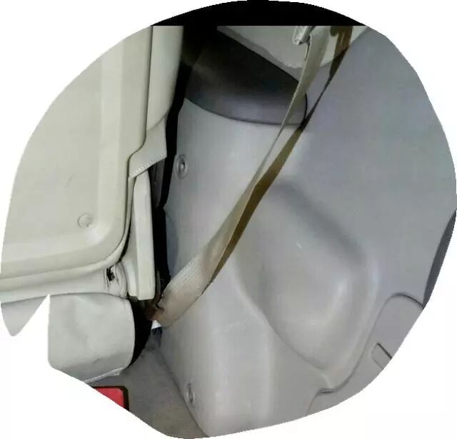 3、检查ABC柱 所有安全带、主副驾坐椅有无破损(有没有烟头印来判断平时车内环境,坐椅下方 安全带刹车附近有无水渍泥沙锈蚀来判断有无泡水)